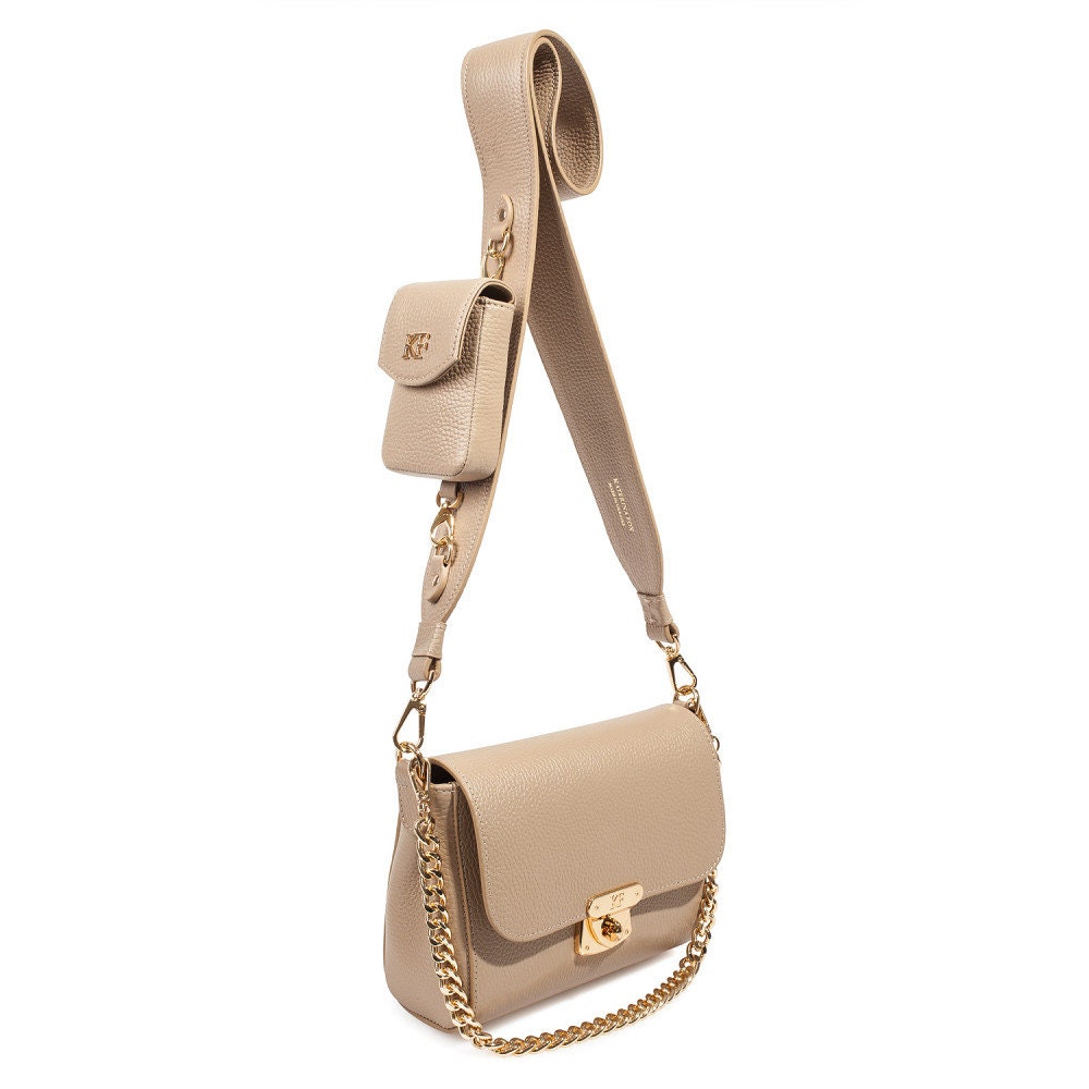 Beige genuine leather woman shoulder bag from ukrainian designer Katerina Fox. Fashionable and elegant modern bag KF for bright girls and women. This bag is able to attract attention and highlight your exquisite taste. Inside the bag is one large compartment and a convenient zippered pocket for small items, closes the bag on the clasp. The bag is comfortable to wear on the shoulder or across the shoulder. If you are planning to buy excellent leather bag at an affordable price, this handbag is the right choice!