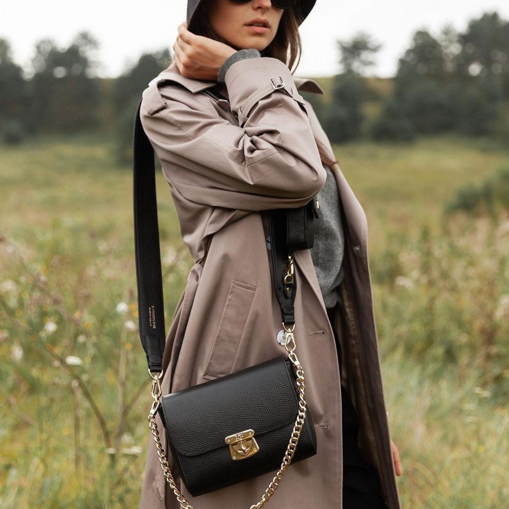 Black genuine leather woman shoulder bag from ukrainian designer Katerina Fox. Fashionable and elegant modern bag KF for bright girls and women. This bag is able to attract attention and highlight your exquisite taste. Inside the bag is one large compartment and a convenient zippered pocket for small items, closes the bag on the clasp. The bag is comfortable to wear on the shoulder or across the shoulder. If you are planning to buy excellent leather bag at an affordable price, this handbag is the right choice!