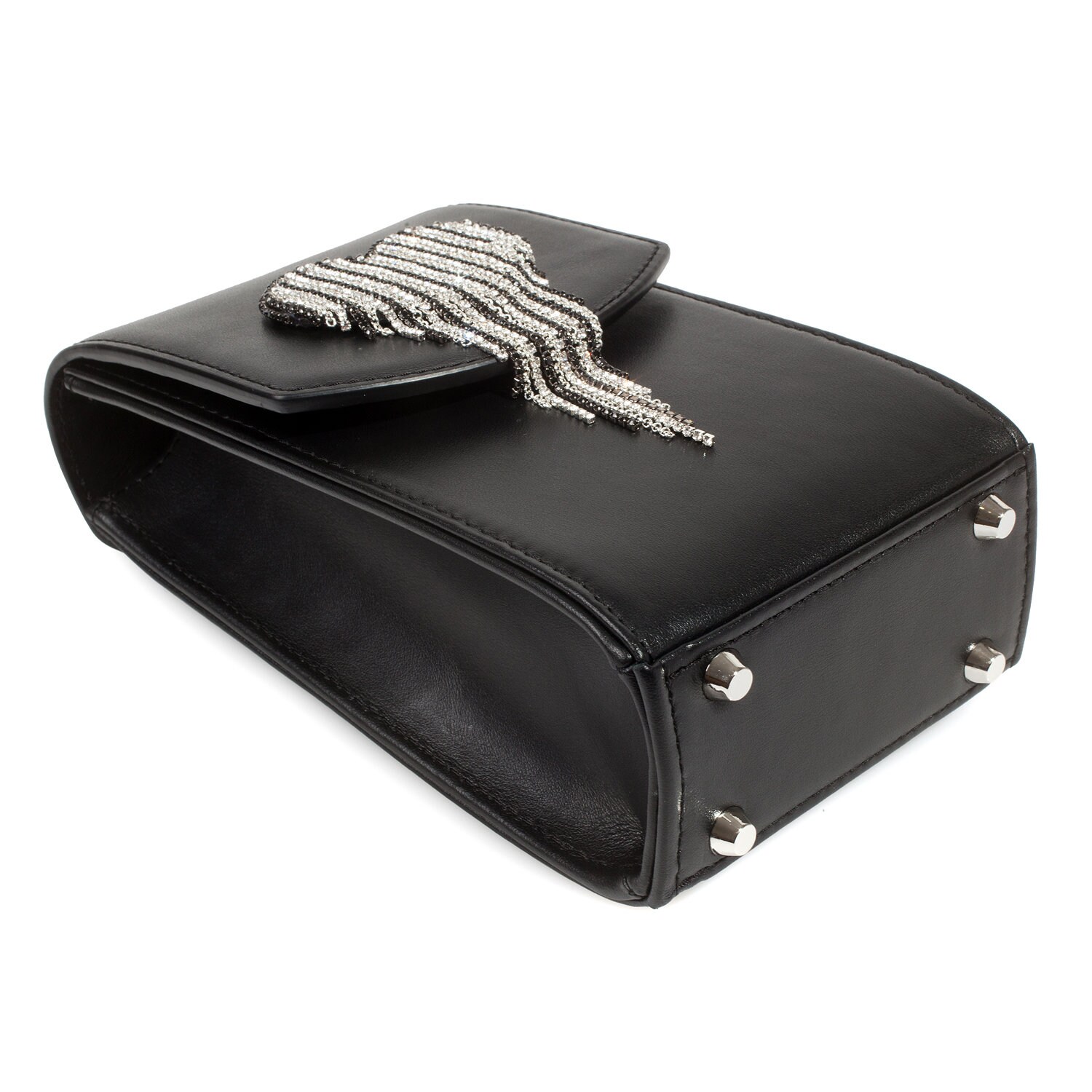 Black genuine leather woman crossbody bag from Ukrainian designer Katerina Fox. Fashionable and elegant modern bag KF for bright girls and women. This bag is able to attract attention and highlight your exquisite tastes. The internal space of a bag is equipped with one spacious compartment, four patch pockets for cards. The bag is closed on the button-magnet. The kit also includes a storage bag.