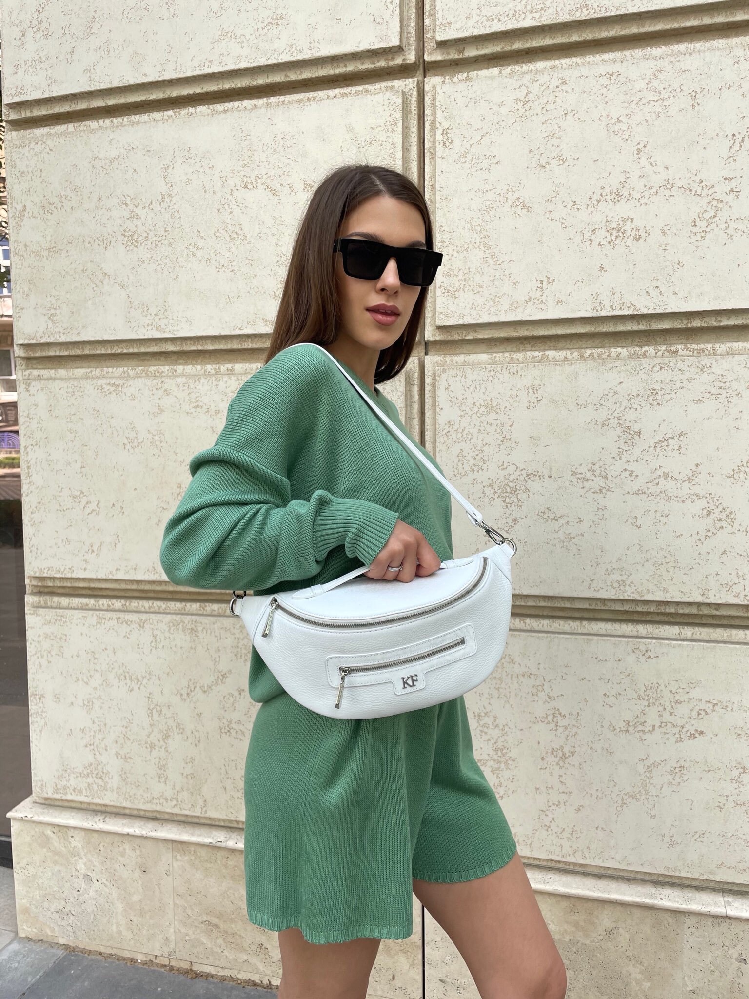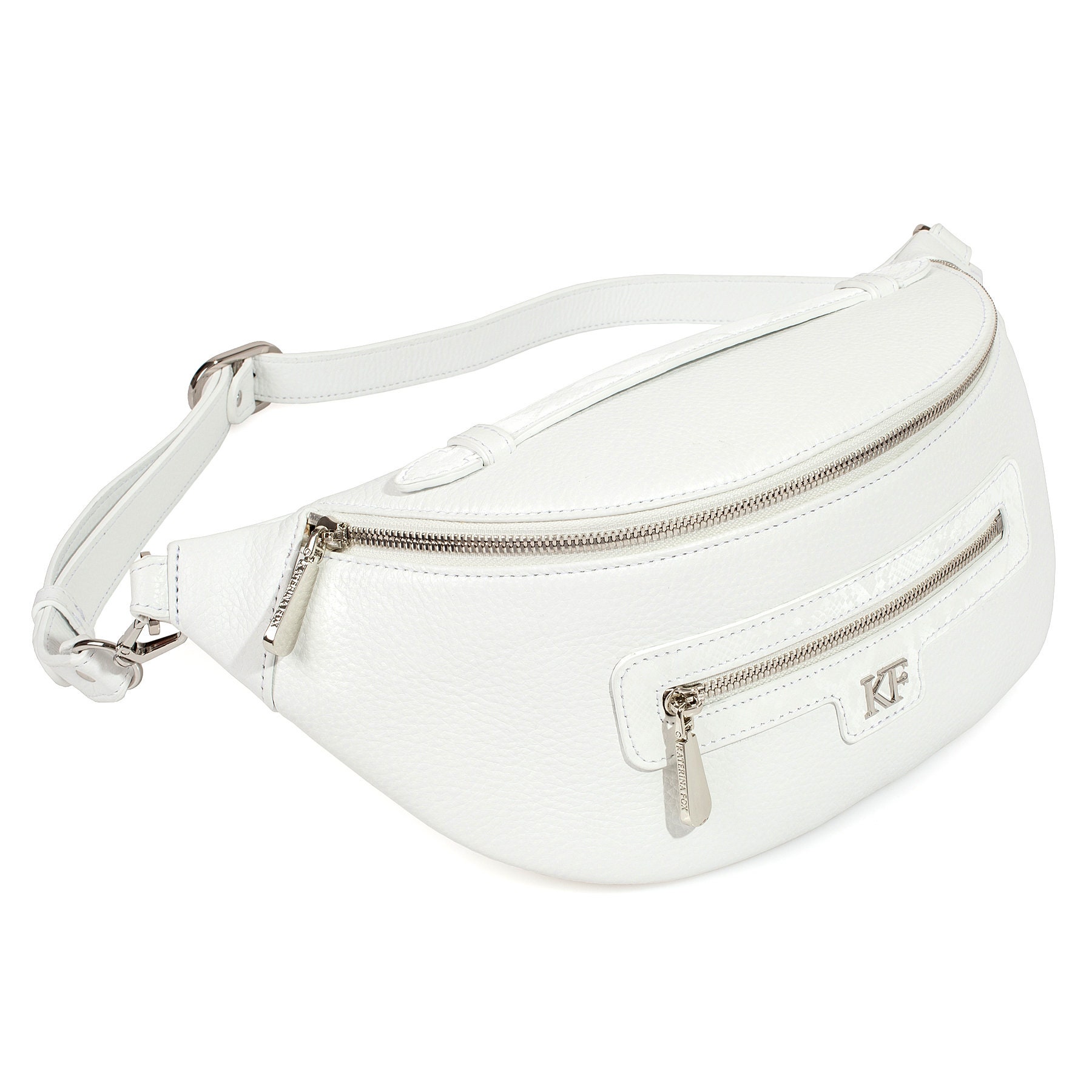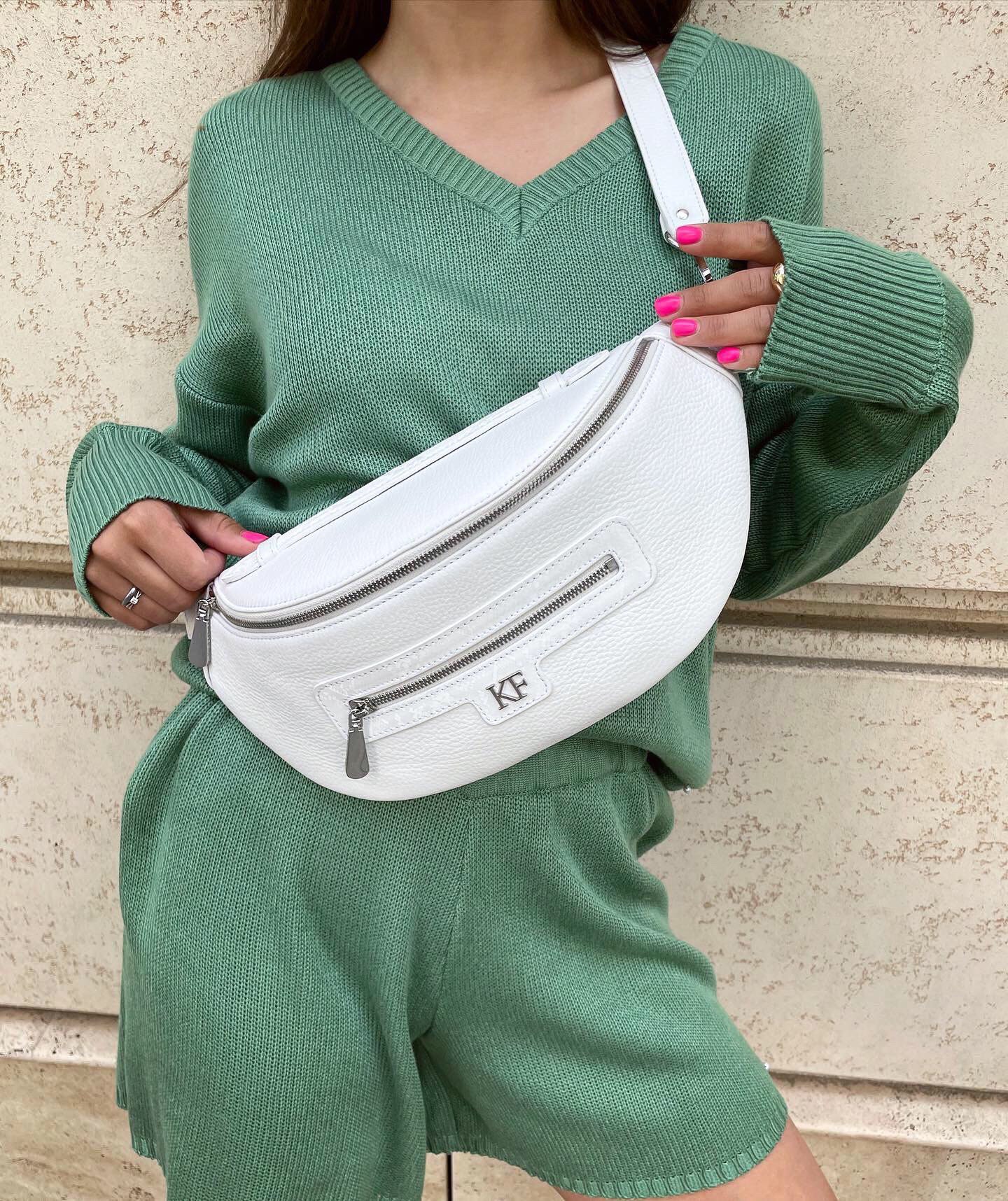 Leather women's Banana bag, White Leather Banana bag, Women's Banana bag, Leather belt Bananka bag KF-4202
